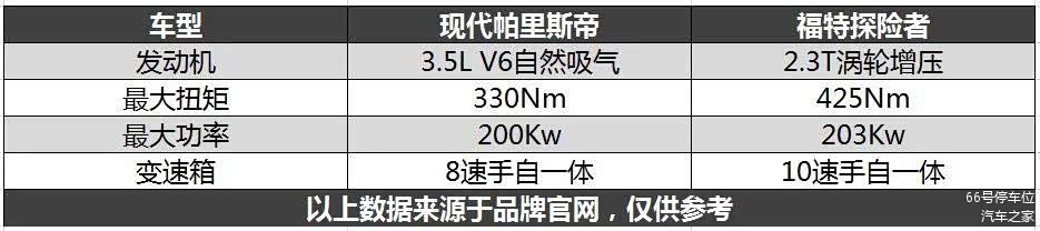 动力与品控帕里斯帝优于探险者。帕里斯帝在美国市场的月销在7000辆左右。来到国内后帕里斯帝以进口身份进行销售,进口现代的品控与做工远强于北京现代,更不必说与做工口碑更糟糕的长安和福特进行比较了。搭载上如今市面上少见的大排量3.5L V6发动机,动力和品控谁强谁弱高下立判。