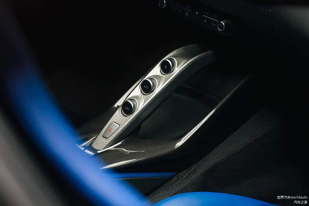 内饰则完美承袭了法拉利赛车基因。电光蓝(electric blue)座椅采用真皮和Jeans Aunde®面料的高格调组合,搭配4点式赛车级安全带,在全黑内饰的映衬下令人过目难忘。除去后侧灯和车窗之外,座舱内充满浓郁的怀旧气息。仪表盘和方向盘上的金属部件均采用50、60年代著名GT赛车通用的裂纹漆效果,发动机凸轮盖亦是如此。此外,常用于诸如法拉利250 LM和250 GTO等车型上的锤纹漆效果,在这款One-Off车型的门把手和中央控制区域等细节上亦运用得淋漓尽致。
