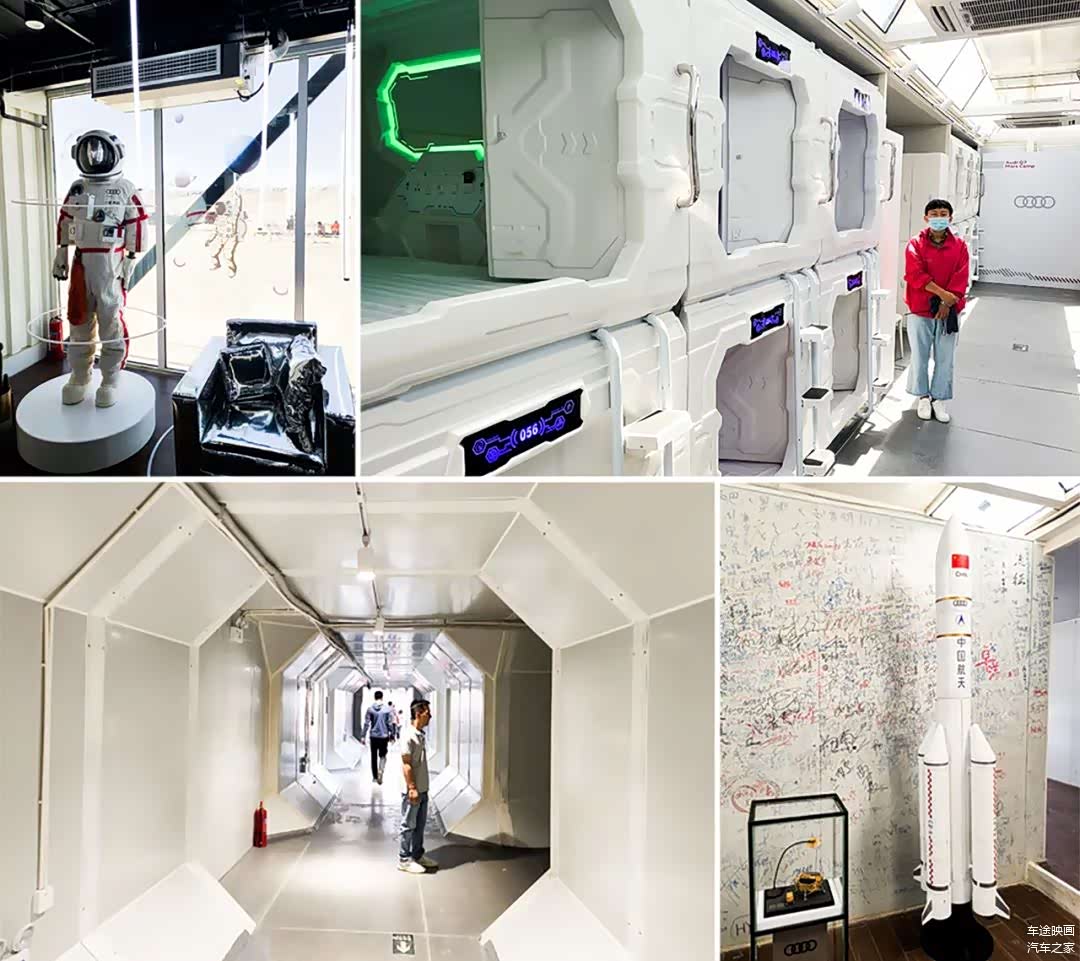 想想下午的颠簸,饭还是决定吃个半饱。随后我们也参观了一下火星营地的内部环境,这里有着很多关于中国航天的展览。并且有着胶囊酒店,分男女区域,一人一间。据说之后有其它品牌的活动在这里入住,想想这一天都不能洗澡,暗自庆幸着我们没有住在这里。