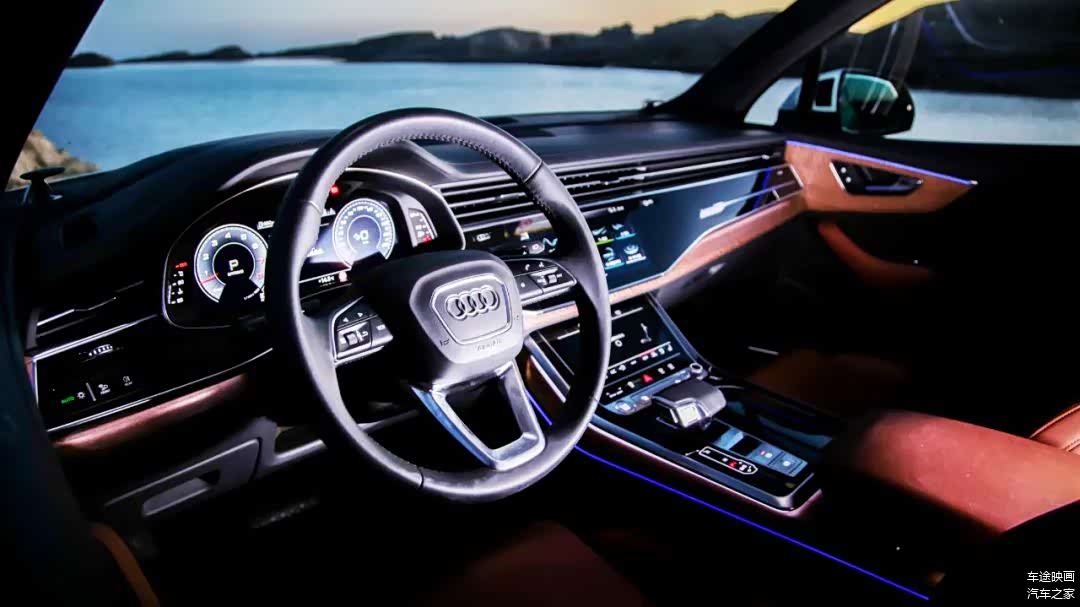 夜幕降临,车内的氛围灯光也让全新奥迪Q7三屏联动的虚拟座舱熠熠生辉。一路上,我们也享受着Bang & Olufsen音响23个扬声器音响带来的震撼效果,香氛系统也让我们保持着舒适的味觉。