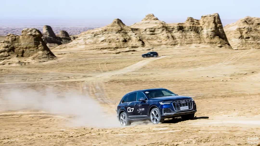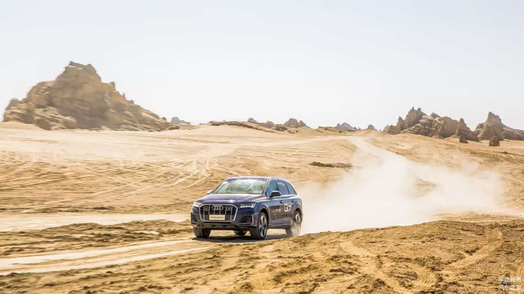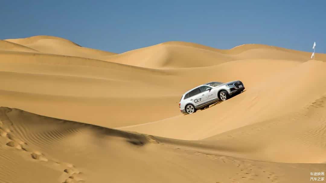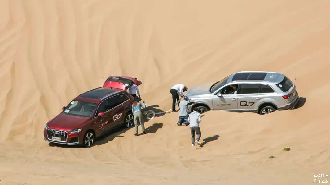 总之,奥迪Q7强大的quattro四驱能够保证在沙漠中充足的抓地力,但在驾驶技巧方面,也需要善用车辆的惯性转移,尽量不要让车辆车头与车尾处在同一平面。因为在坡道中,车头或车尾向下的重力作用,对于你起步的脱困很有帮助。而我刚才就是明显犯下了这个错误。