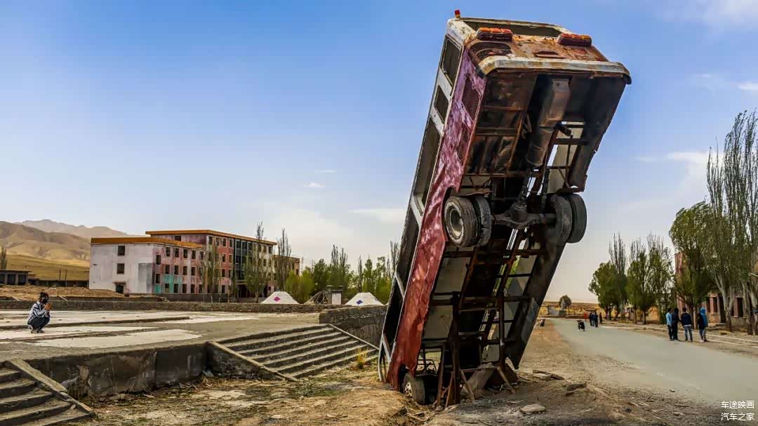 如今这里成为了影视基地,陷在土地里的这台客车,正式为了是当时拍摄《九层妖塔》所设计。同时这里拍摄过《西风烈》等多部电影。