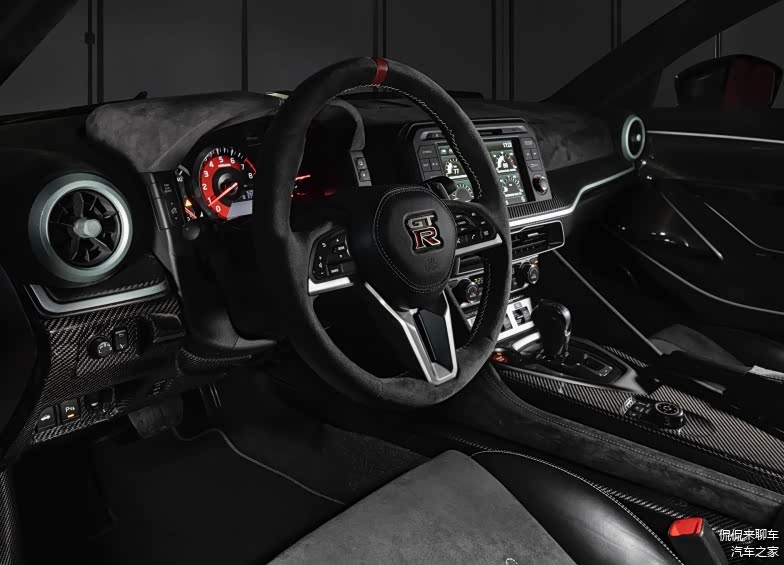 内饰方面,日产GT-R50 by Italdesign的车内布局也是相当精致,在用料和做工方面,更为出众,摸起来更有质感,而像液晶显示屏、液晶仪表盘、三幅式多功能方向盘等等均有配备,科技感十足,并且舒适性方面也堪称厚道。