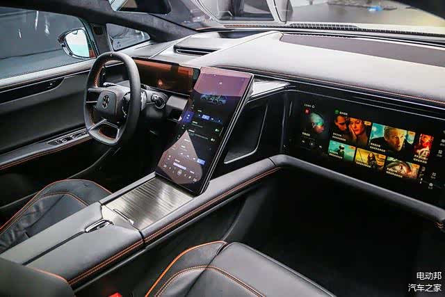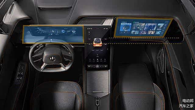 内饰方面,高合HiPhi X同时搭载14.6英寸全液晶仪表、16.9英寸中央触控屏、19.9英寸副驾娱乐显示屏,3块大尺寸液晶屏幕确保主副驾均能享受到独立的车机功能和影音娱乐。