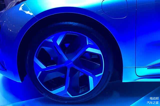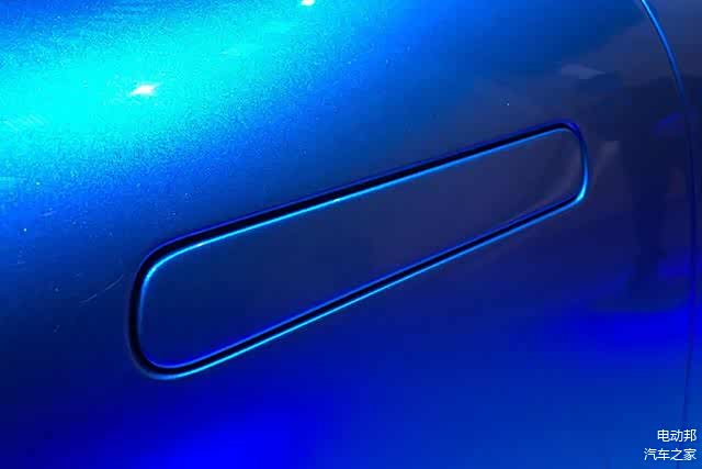 具体到车身尺寸,目前官方公布的数据仅显示该车长度为4950毫米。车身侧面,饱满的车身腰线勾勒出动感的车身造型,能够看到它具备丰富的新能源汽车元素,隐藏式门把手设计和双色旋风式轮辋除了能够增加视觉辨识度,还能够起到降低风阻的作用。