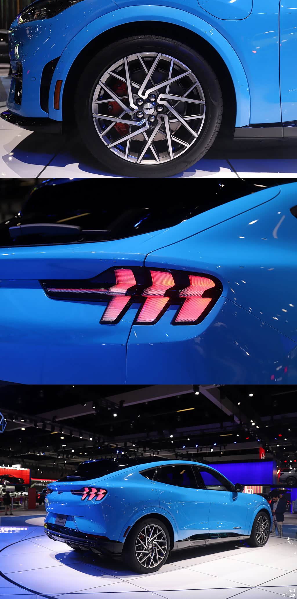 原来是福特Mustang Mach-E,正脸看去肌肉感饱满,这才人们心中的美式车,也许这算不上什么情怀,但是天天看着福特的福睿斯和三缸的福克斯,真的没胃口。 Mach-E的长宽高分别是4724/1880/1600mm,轴距2972mm,定位中型SUV。