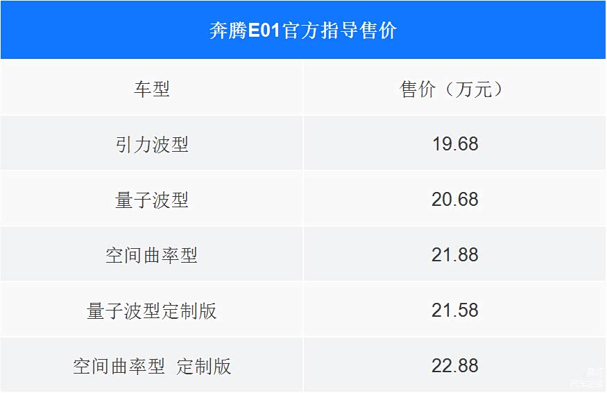 且不论配置,单从命名上,奔腾E01就足够让人印象深刻,各种波型都用上了,这名字不会是找物理老师起的吧?
