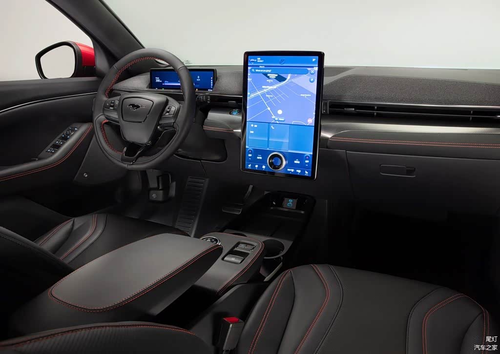 内饰方面,极简设计风格搭配中控大尺寸的触屏,看起来非常舒服。全液晶仪表盘的尺寸是10.2英寸,中控触屏是15.5英寸,此乃福特家最大的屏。