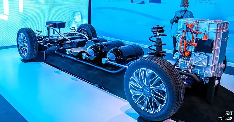 上汽大通MAXUS EUNIQ 7的底盘下方配备了三个70Mpa的储氢罐,可装载约6.4Kg的高压氢气,3-5分钟即可加满,然后由电化学发电装置产生电能,驱动电机从而驱动车辆行驶,驱动电机的最大功率约150kW。官方公布的零百加速时间是官10.9秒,最高车速达160km/h。
