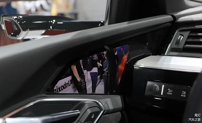 中控的层次感分明,12.1英寸的中控触屏和8.6英寸的空调系统屏幕联袂演绎出科技感,但这不是e-tron Sportback内饰中最耀眼的光芒,A柱下方的屏幕可以显示侧后方的景象,增大可视角度,这才是真正的科技感。