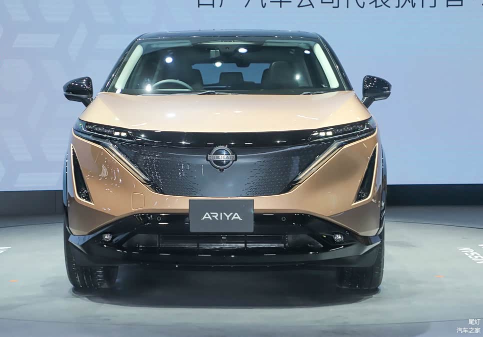 从前脸望去,这车的车头有点过厚,大家注意中间的Logo,这是日产的新徽标,Ariya 作为搭载新徽标的首批车型,颜值上,不能说差点意思,但绝对有争议。