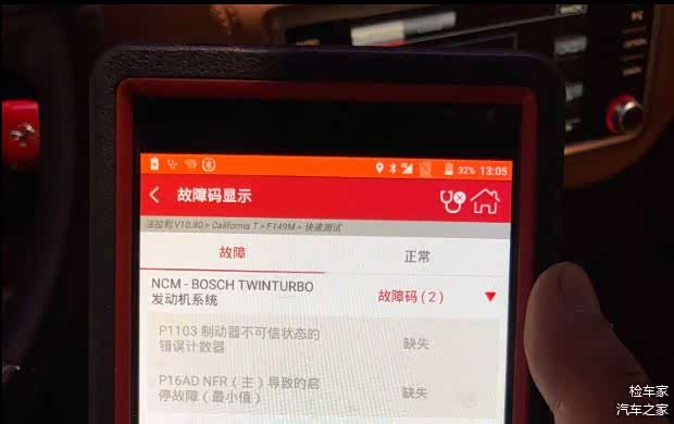 不过在检测OBD的时候还是发现了此车存在故障码,应该是刹车液位传感器或者是刹车片位置传感器信息传输错误造成的,属于历史所储存故障码,可事后到4S店进行检查消除。内饰检测完,下面就到老司机们最喜爱的路试了。