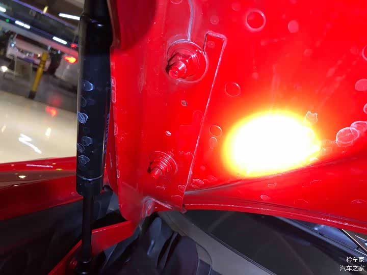 接着检测发动机盖固定螺丝,经检测螺丝无拆卸拧动错位痕迹,发动机盖边缘密封胶规整,漆面无二次喷漆痕迹,结合车辆外观漆面检测可以确定发动机盖没有拆卸更换。