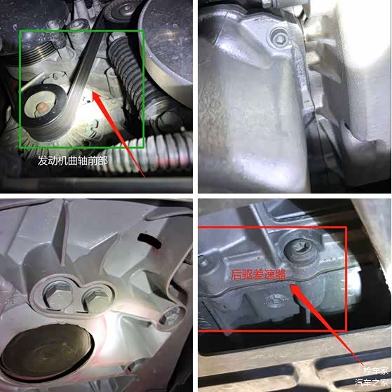 护板拆后,发动机底部非常的干净,发动机与变速箱连接的螺丝也是没有拧动拆卸痕迹,发动机没有渗油漏油的现象,看起来挺不错的。