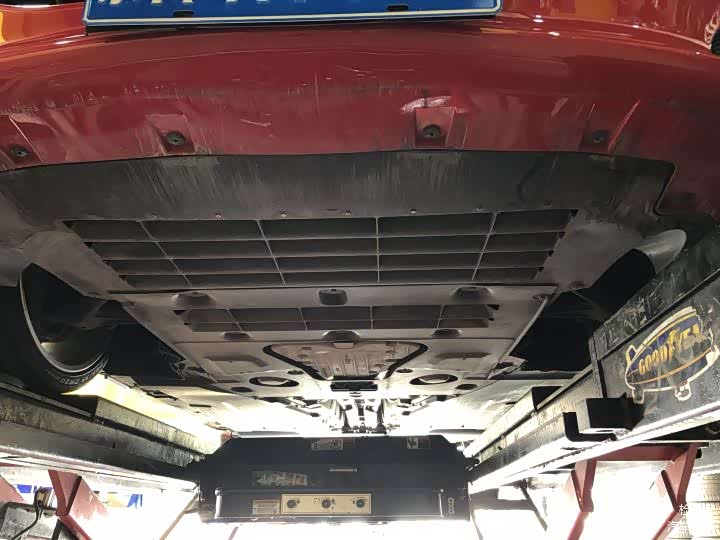 路试回来后,便直接开到了车行后面的维修厂进行上架做底盘检测:随着车辆缓缓升起,底盘的状态一览无余,前后大护板基本没有大的剐蹭破损痕迹,也没有油渍,但是同样不能掉以轻心,尤其是这种底盘低的超跑。