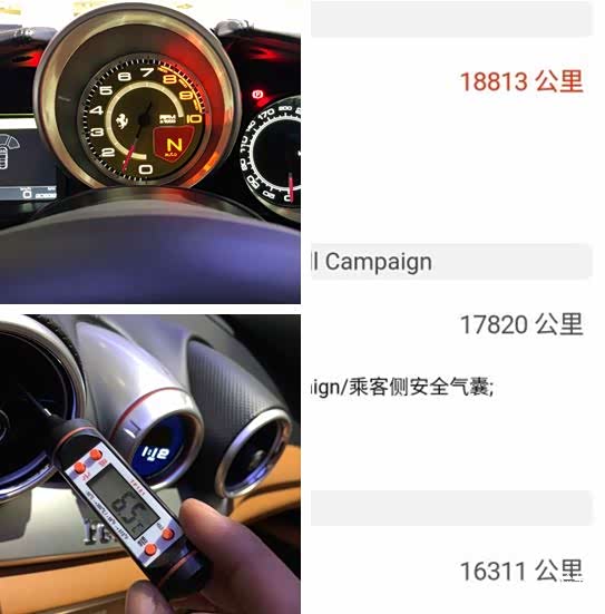 路试出于安全考虑,公司规定路试不允许拍照,所以飙车的画面请各位老司机自行脑补:法拉利的车起步并不顿挫,但是也不柔和,一般的自动挡车辆松开油门就会自己走,而法拉利必须要给油才会起步。在路上过程中五种驾驶模式可以随意切换,车辆加速非常有力,基本上可以秒杀周围所有车辆,底盘无异响,方向无跑偏,整体来说车辆行驶工况正常,并没有发现异常情况 。