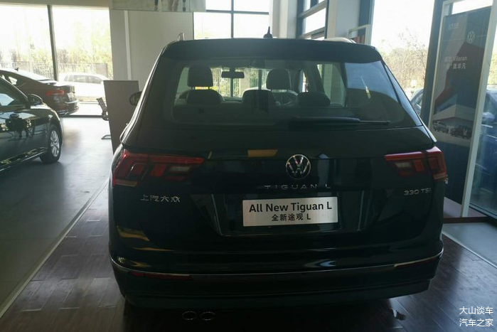 车身尾部新车多边形的尾灯组造型犀利,灯腔内部的光源走势较为刁钻,点亮后具备不错的视觉效果。中间则有折线形的线条进行连接,全新的平面化LOGO下方则有中置的“TIGUAN L”标识,提升辨识度的同时也向家族化靠拢,显得更加高级。