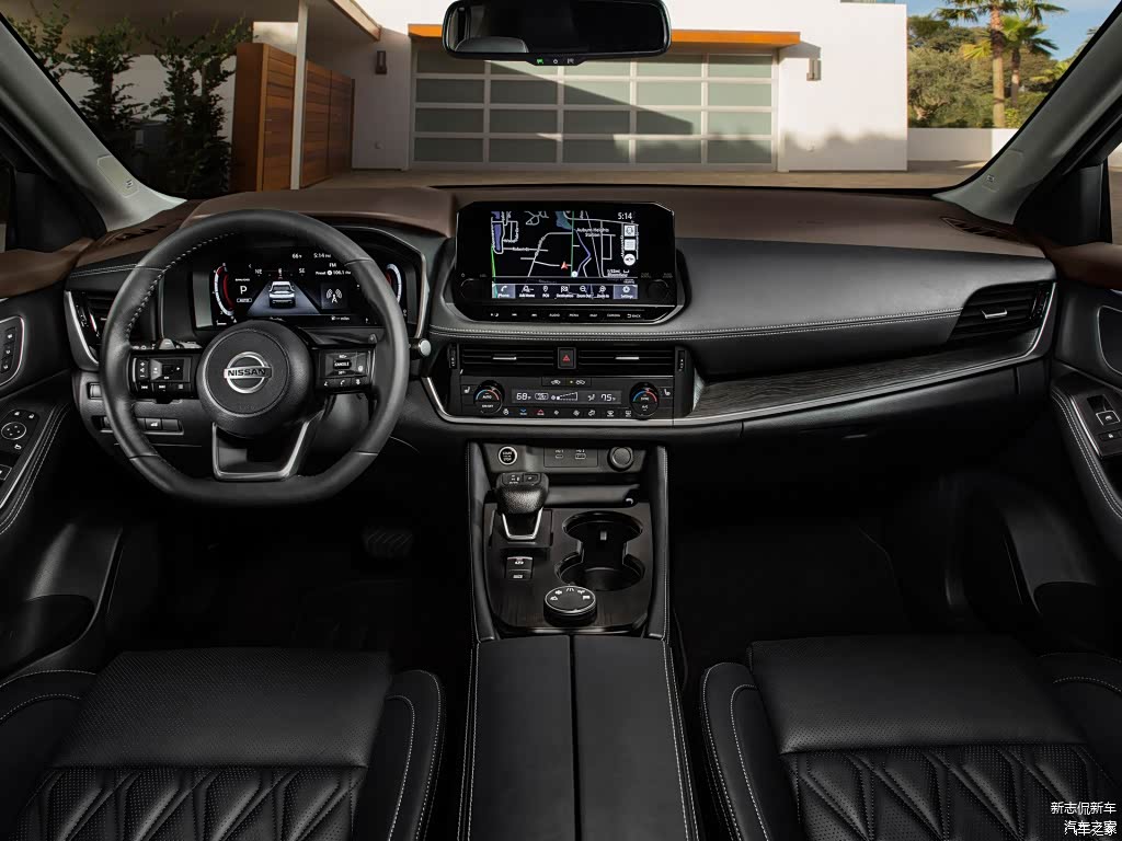内饰部分的提升更加明显,方向盘造型进行了升级,外圆内方的样式看着还比较顺眼,底部的金属一样的镂空看起来也很精致,仪表采用了全液晶显示,同时图中也可以看出内部的UI变化也会比较丰富,中控台分为了三个层次,上部为液晶屏,中部为空调控制区,全新一代奇骏依旧保留大量的按键与旋钮,操作上比较便利。
