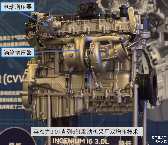 Ingenium 3.0T直列6缸发动机采用更加先进的电动增压器加涡轮增压的双增压技术。