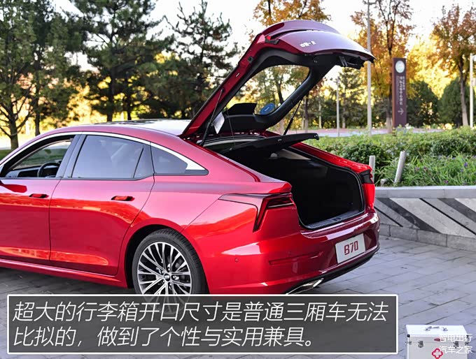 对于奔腾B70的外观,包含了运动、时尚、大气……可以说是集成了当前最为主流的设计,而最为亮眼的莫过于掀背式车身,这项设计说实话颇为大胆,要知道自主品牌甚至合资品牌同级别都少之又少。当然,它并不是单纯的“花瓶”,在车身尺寸方面也足以碾压竞品车型,进而还可以提供更优的驾乘空间。