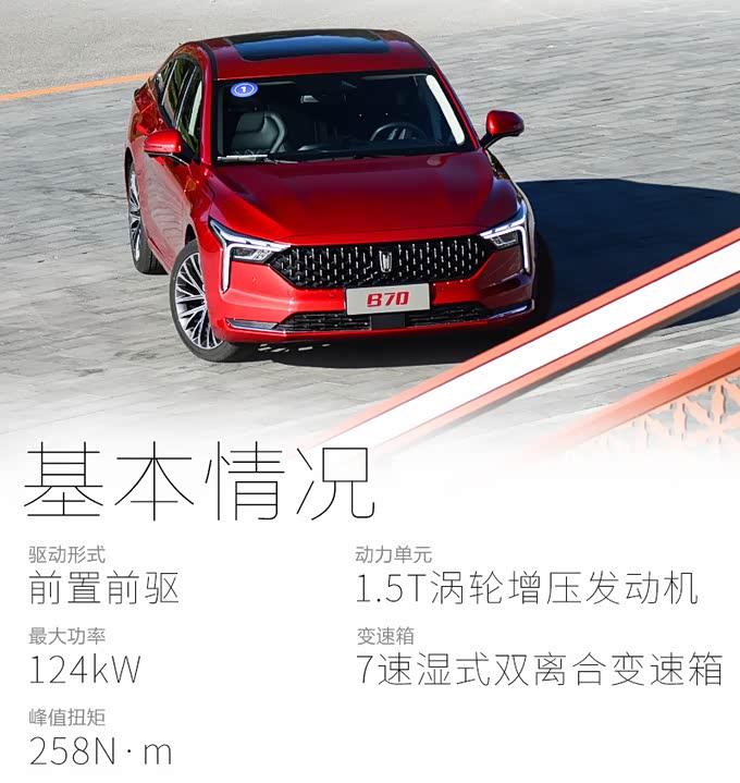 动力总成部分,奔腾B70搭载了现阶段最为主流的“发变”组合,1.5T涡轮增压发动机+7速湿式双离合变速箱,发动机最大功率可达124kW,峰值扭矩258N.m,就参数而言可与绝大多数主流同排量发动机平起平坐。