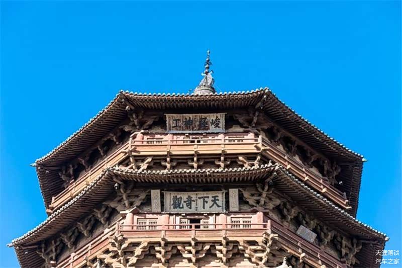 应县木塔在设计和施工上匠心独具,整体构架全部用木材建造,在结构上采用双层环形、空间框架。上层柱脚插在下层柱头的枋上,并向内递收,形成一层比一层小的优美轮廓。60多米高的木塔,相当于现代楼房20层高,全部靠木构件互相卯榫咬合,没用一个铁钉子。