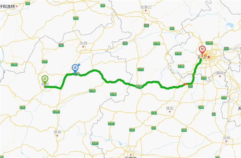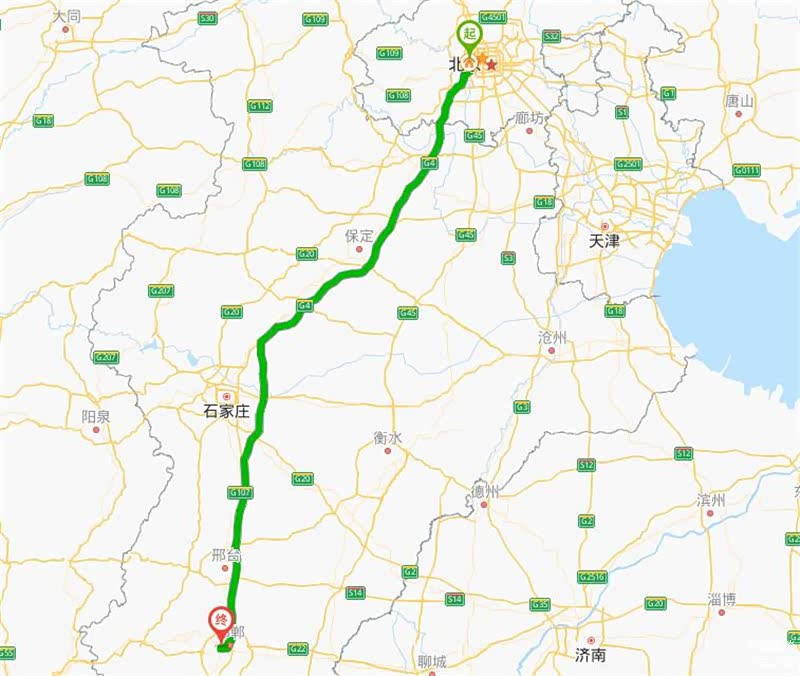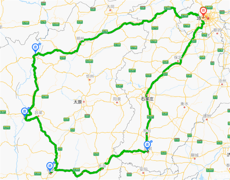 距离450公里,预计自驾时间7小时,途经:荣乌高速、涞涞高速,收费约170元。