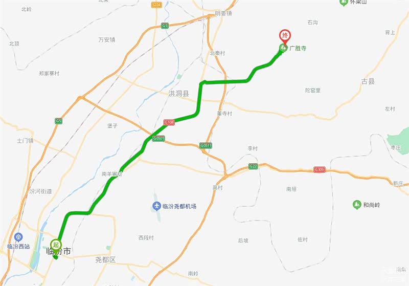 距离42公里,预计自驾时间1小时,途经: 霍侯一级公路、广胜路。‘