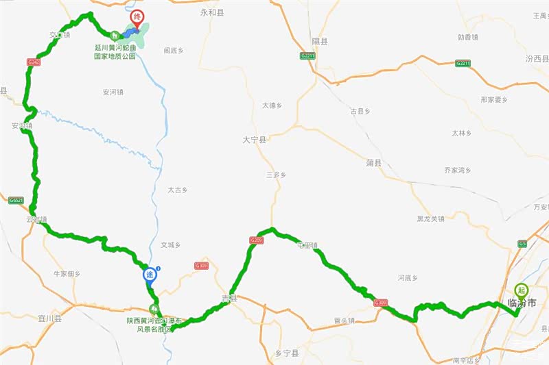 距离310公里,预计自驾时间7小时,途经:309国道 、延壶路、 242国道。通过了壶口景区后,就开始上山了,从这里开始一直到乾坤湾是130公里的山路,都是远离黄河。车一会儿上山一会儿下山,一脚油门一脚刹车,山路十八弯,弯弯急转弯。