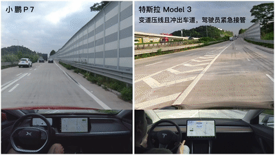 首先在进入高速时,NOA出现了压线变道的情况,难道是美国的公路没有设置导流线?求解答。反观小鹏P7,NGP的变道则比较稳健,但时机略晚,显得就比较保守了。