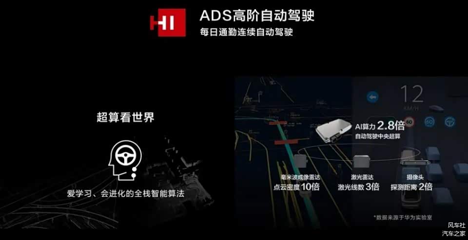 在智能驾驶方面,HI高阶自动驾驶ADS以L4级自动驾驶架构为基础,提供面向L4~L2+级自动驾驶全栈解决方案(包括传感器、中央超算、算法)。另外,其还有机器自我学习技术。