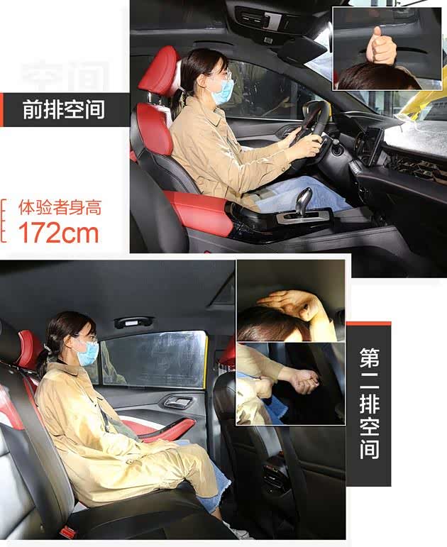 乘坐空间方面,体验者身高172cm,将前排座椅整至日常坐姿,此时的头部空间剩余一拳左右。前排座椅保持不变,体验者进入后排,此时腿部空间超过两拳,头部空间约为一拳,这样的空间表现在同级别车型中较为出色。