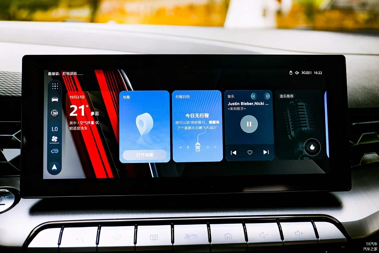 12.3英寸的组合仪表由中间的7英寸液晶仪表以及两侧的虚拟表盘共同营造出了类似全液晶仪表的视觉感受,整体交互界面颇具科技感。通过CAN总线传递来的数据也能直接将导航、多媒体信息、天气信息、电话信息、智驾信息、行车电脑信息等内容投射于中间的液晶屏上,实现与中控屏的互动及信息共享。