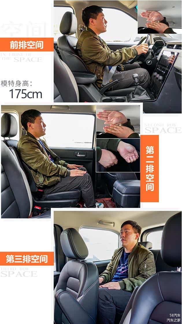 在乘坐空间方面,五菱宏光PLUS还是非常具有竞争优势的。175cm的体验者坐在前、中、后排时都能拥有不错的头部空间,而后排腿部空间即便在第二排座椅前后挪到极限位置也还可以接受。