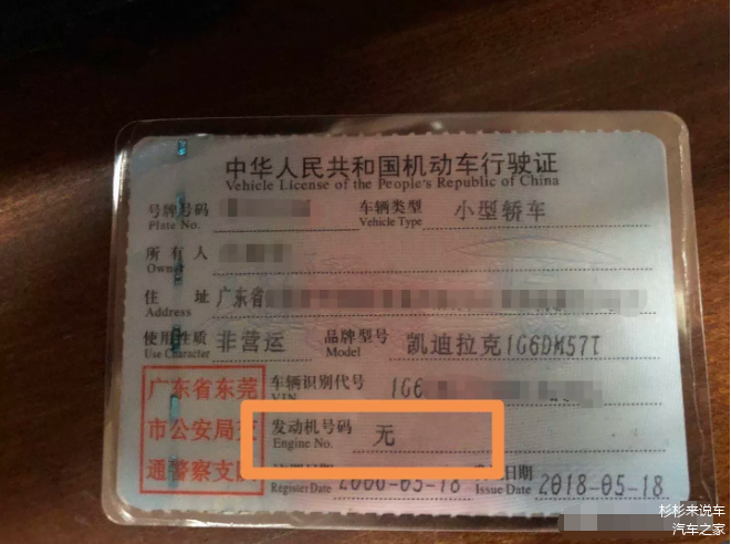 早在2000年左右,广东那边进口车盛行,很多日系、欧系、美系的进口车都率先运到广东省那边就近销售。一是为了省运费,二是广东那边经济比较富裕。而在这些进口车当中,一些老式的美系车就没有发动机号码,但是这些车确实是正规来路的车,可以正常上牌。很多时候都把车架号的后六位当作发动机号。所以发动机号那一栏写的就是“无”。