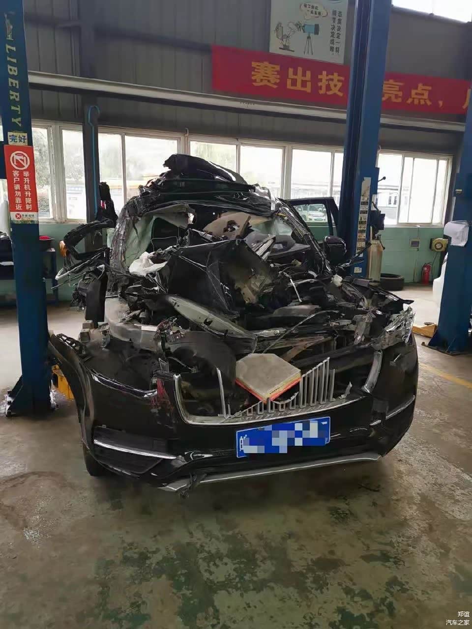 根据车主的描述,当时正驾驶 XC90(图片 | 参数 | 询价)正常行驶,被后方的一辆大货车追尾,然后大货车顶着XC90撞上了前方的重型牵引车和一辆轿车,造成了高速公路上四车追尾的严重事故,整个车辆都报废。