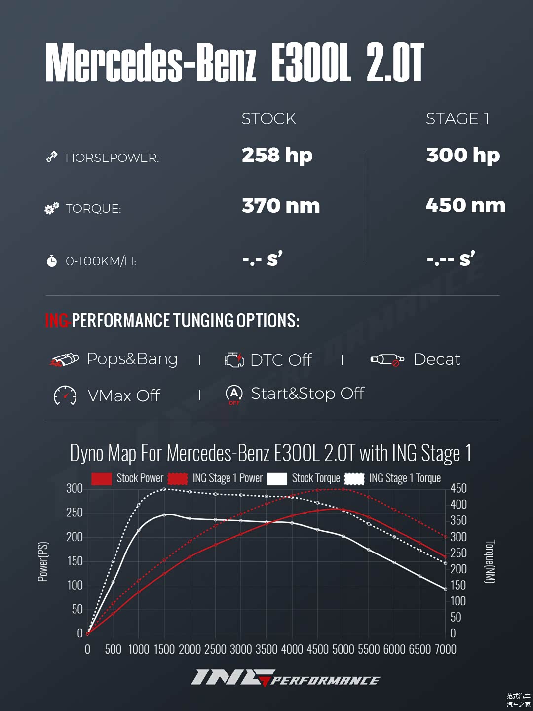 一阶:马力300Ps 扭矩450Nm。