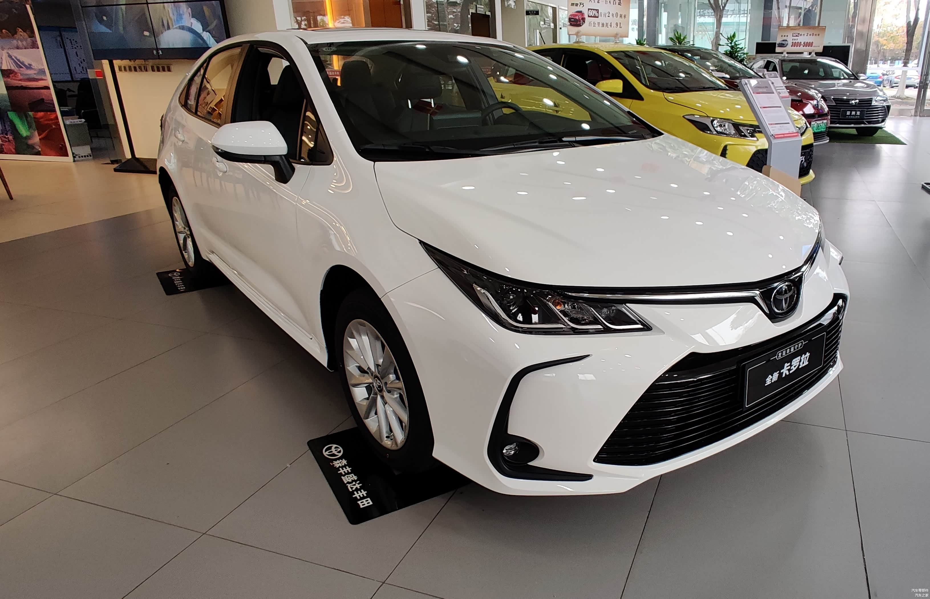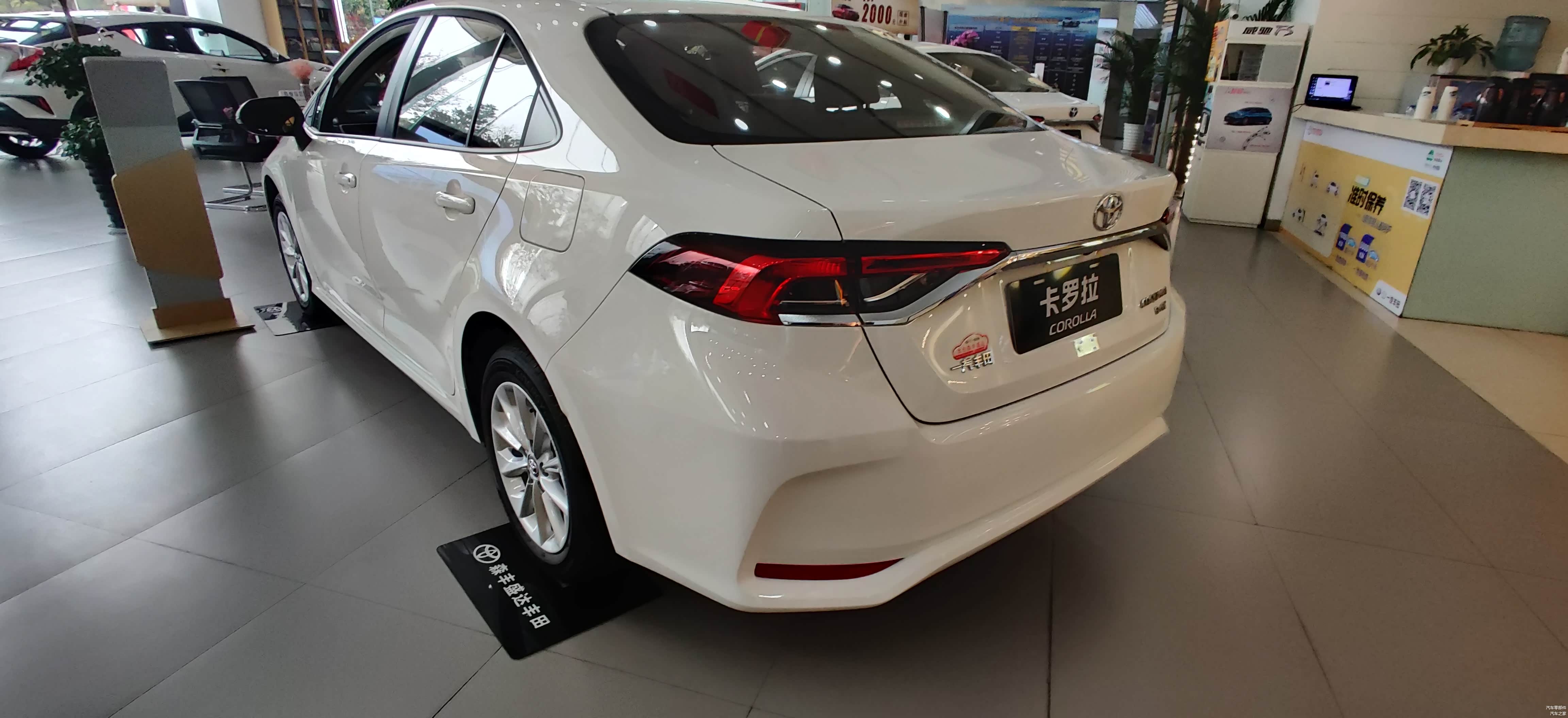 进入这家店里最先看到的RAV4荣放,正对着4S店大门,而卡罗拉则摆放在店面靠里的位置,可见在丰田阵营里,卡罗拉已不是那个最靓的崽。现款卡罗拉TNGA架构之上诞生的,展车是2021款 1.2T S-CVT 豪华版,前格栅宽大有力,深邃立体,提升视觉张力、双重J形镀铬装饰LED大灯,棱角锋利,尽逞霸气之势。前保险杠宽大的包角结构,与后保险杠包角形状交相辉映,提升整车协调感。