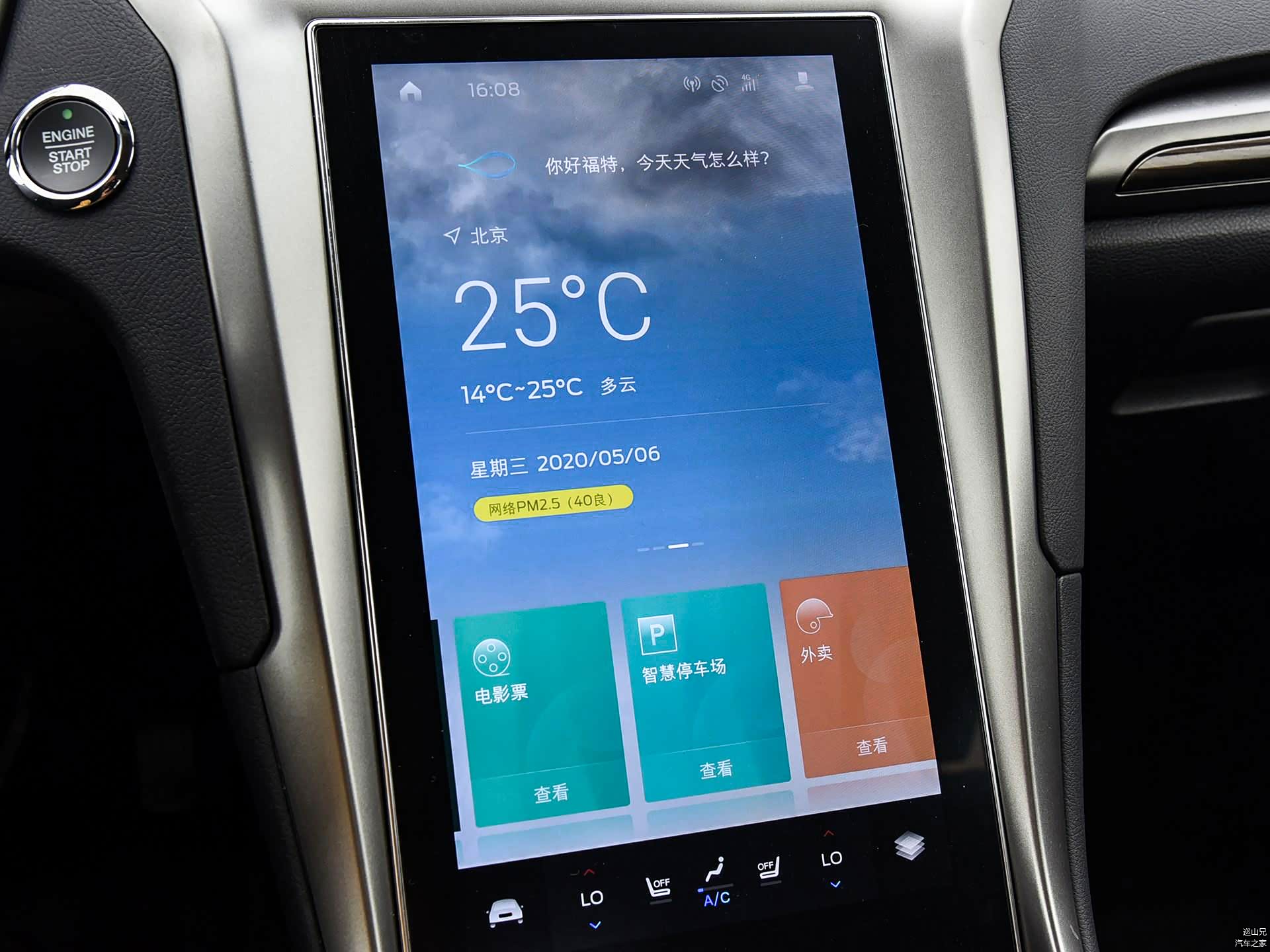 从实际体验的效果来看,这套车机显示的功能还是非常全面的,流畅度也不错。不仅内置了百度地图、QQ音乐等热门应用,还可以操控空调界面,这里需要指出的是,福特蒙迪欧非常贴心的把空调操作界面的快捷键设计成了实体按键,只要一按就能一键进入空调调节界面,省去了在二级菜单寻找的困扰。