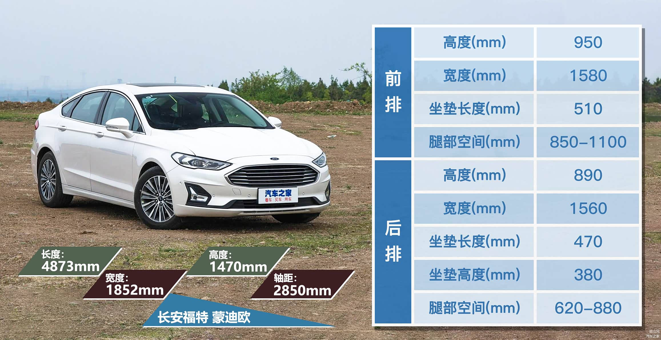 空间表现方面,福特蒙迪欧2850mm的轴距在同级别中算中等偏上的,比丰田凯美瑞(2825mm)、本田雅阁(2830mm)和别克君威(2829mm)都要长,在乘坐空间上,蒙迪欧的表现还是比较不错的,前排乘客和后排乘客都有比较充足的头部空间和腿部空间,乘坐感受比较宽敞,不会觉得压抑。