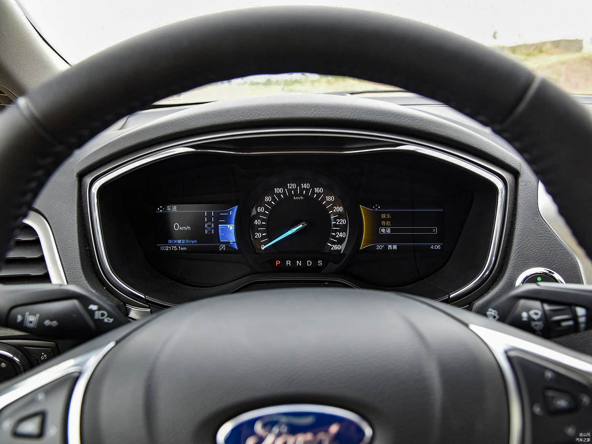 我最喜欢的就是蒙迪欧的仪表,左右两块小屏幕分别显示行车信息和多媒体信息,中央则是机械式指针仪表和档位显示,显示的信息量大但主次分明,清晰易读。