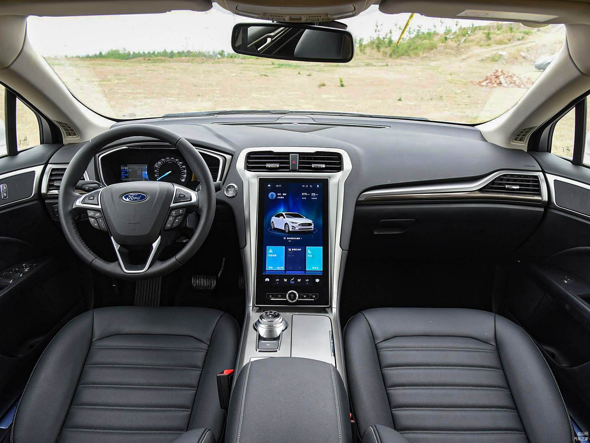 进入车内,蒙迪欧的内饰用料还是比较扎实的,软质塑胶和皮质包裹的面积非常大,搭配上铝合金饰板,整体档次感营造的非常不错。