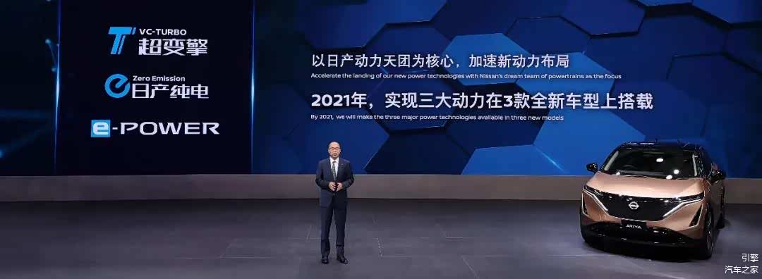 日产发布了VC-TURBO超变擎、e-POWER、Zero Emission日产纯电是日产动力天团,意味着东风日产在动力技术领域的布局正在加速, 2021年东风日产将实现三大动力在3款全新车型上搭载,其中一款便是Ariya。