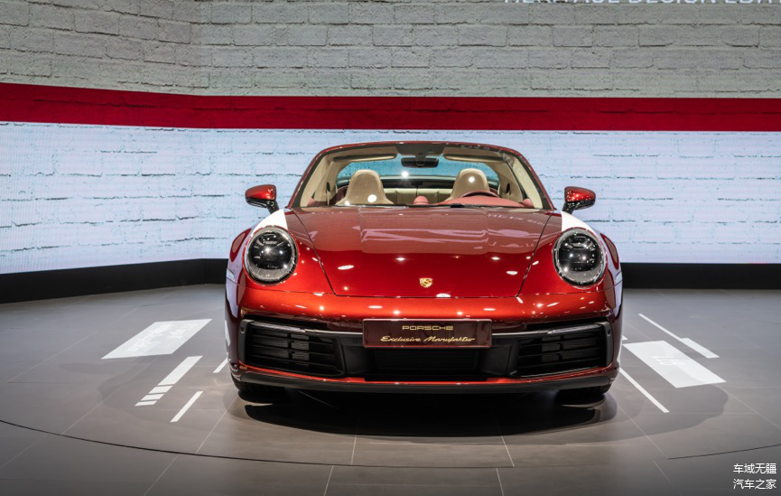 其中,保时捷911 Targa 4S经典重现特别版首次亮相,圆润而经典的外形设计配上赛车元素,再现50年代的跑车风情。内饰方面,新车也致敬了保时捷356车型,采用了大量的灯芯绒材质,撞色设计十分惹眼。