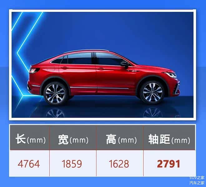 途观X定位为中型SUV,它的三围尺寸为4764/1859/1628毫米,轴距为2791毫米。与途观L相比,途观X的车身加长了52毫米,车高提升了45毫米,轴距则保持一致。这样一来,相同的离地间隙,则避免了途观X的后排头部空间,不会因为车顶的溜背设计而打折扣。