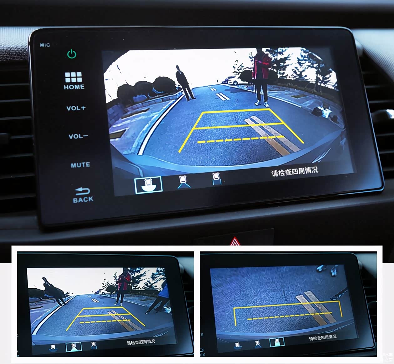 倒车影像的清晰度比较一般,不过它提供了带随动功能的倒车轨迹线,另外它还能给出3种不同的视角,方便驾驶员以不同的角度观察车尾,应对狭小停车位时可以更加从容。