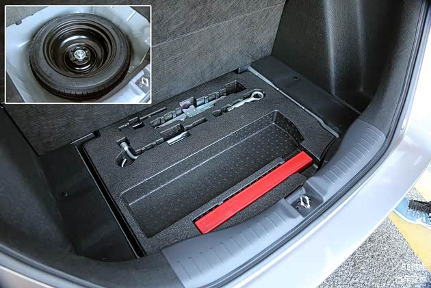 LIFE的后备箱整体比较规整,目测直接容纳3个登机箱是完全没问题的,旁边还能再放一些背包、杂物之类的东西。地板下方是工具槽,上面有个暗格,再额外增加一点容积。有个细节很重要,两段式的地板设计避免了你要拿取暗格内物品时,需要撤走全部上层物品的麻烦。