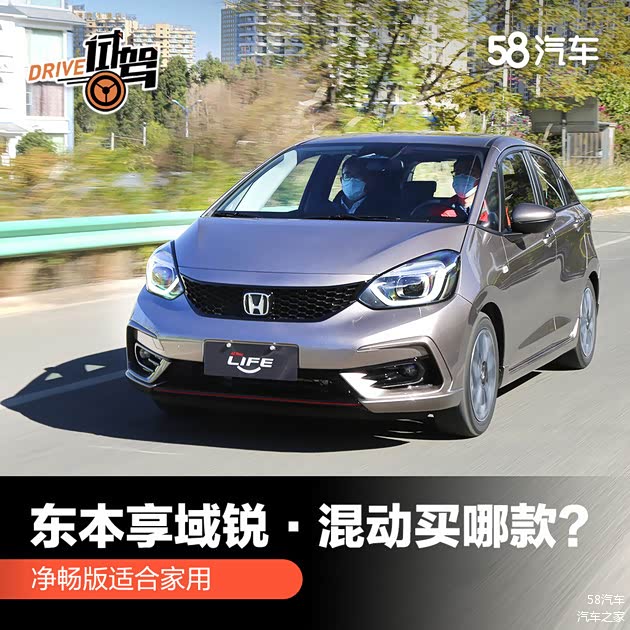 我们拿到的试驾车是LIFE的SPORT版本,它与广汽本田的飞度同宗同源,都是源自日本版的FIT车型,只不过来到东风本田之后,在外形上进行了一定的调整,运动化的风格更明显。