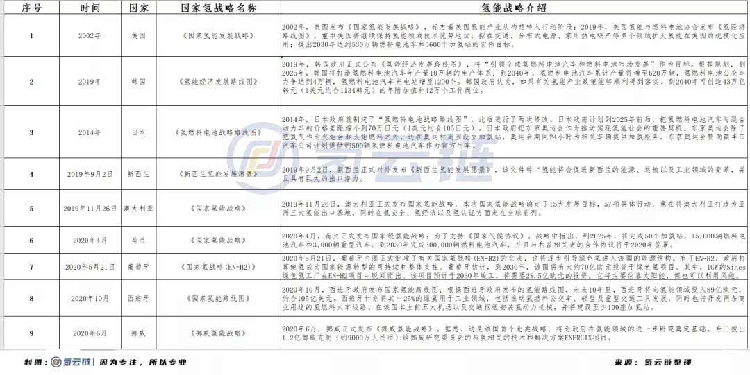 政策方面,2020年可谓国际氢能产业政策元年,欧洲多个国家发布国家氢能产业规划或氢能发展路线图,美国加州则颁布了零排放商用车法案并得到了美国其他州的响应,显示氢能与燃料电池在全球范围内政策预期确立。
