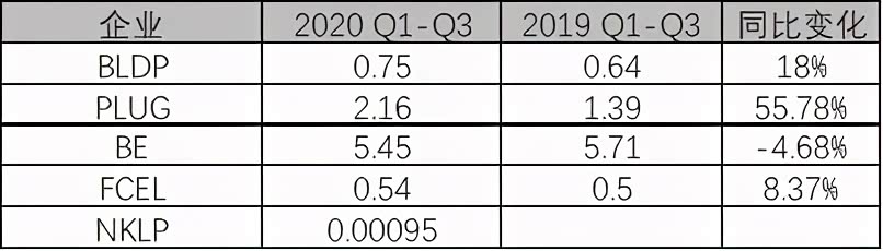 海外多只燃料电池股票股价持续上涨的背后,不是炒概念,而是燃料电池企业业绩的快速上升和全球范围内氢能产业发展趋势的确立。如表1所示: